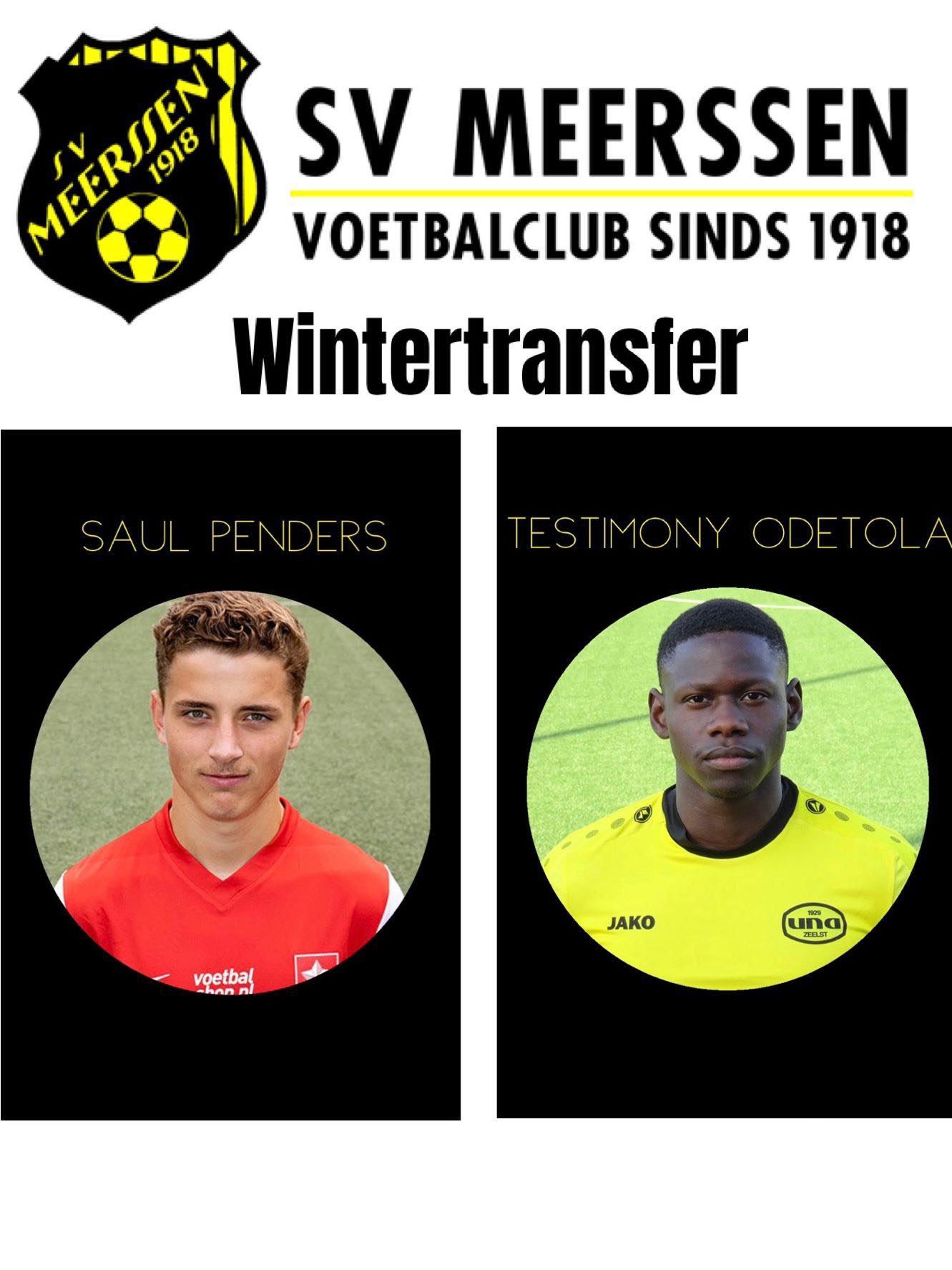 SV Meerssen heet Saul Penders en Testimony Odetola van harte welkom en wenst beide spelers veel succes en plezier bij de club.