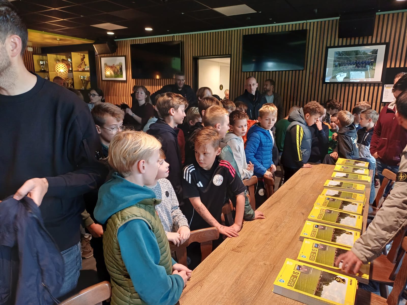 Vandaag was de grote dag, de uitgifte van het Albert Heijn Dijkstra voetbalplaatjes boek. De opkomst was TOP, ondanks dat de herfstvakantie begonnen is. Iedereen was positief en kunnen niet wachten dat de plaatjes uitgegeven worden. Dat gebeurt vanaf maandag 13 oktober. Dus papa’s, mama’s, oma’s, opa’s, ooms en tantes, het sparen kan beginnen. Allemaal naar AH Dijkstra voor de boodschappen. Een woord van dank aan Anke en Bas voor deze prachtige actie en het in SV Meerssen gestelde vertrouwen.